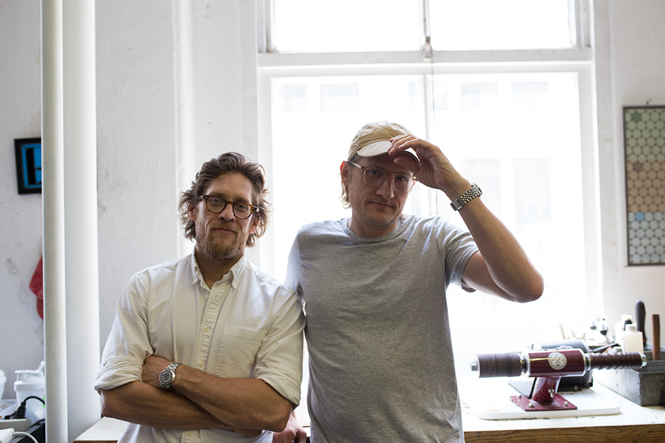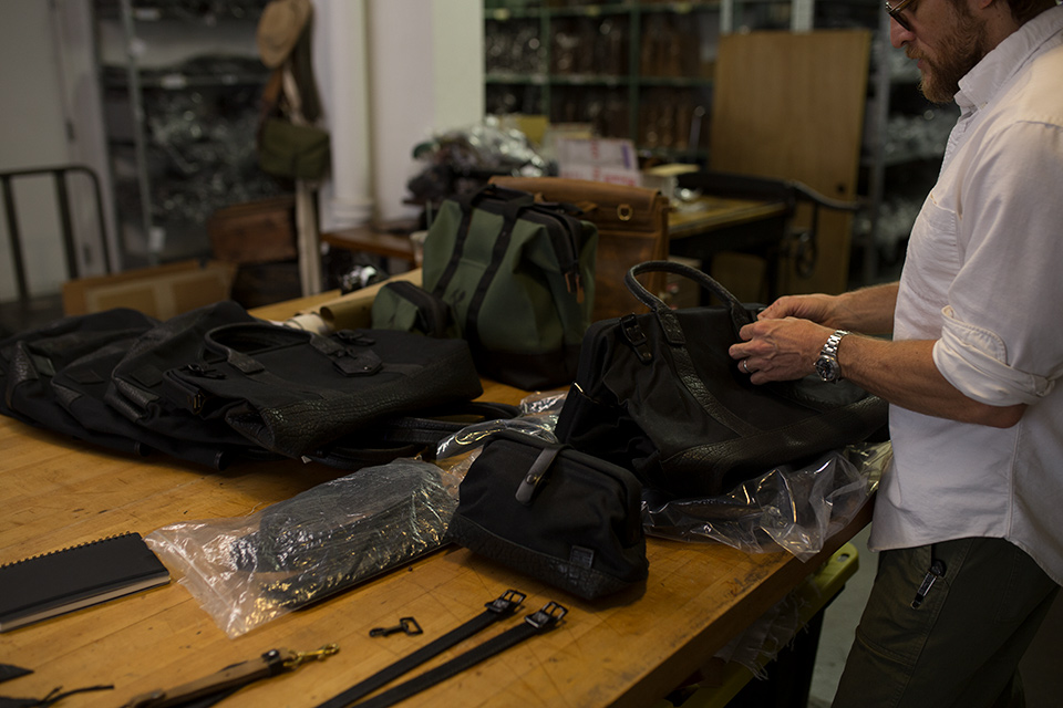 Chris and Kirk Bray of NYC-based Billykirk believe in not only making things in America, but making them right, every time. While putting together each of the three bags found in the Billykirk x Uncrate Stopover Collection, we visited the Bray brothers at their design studio and workshop to get a first-hand look at the collaborative collection being made (by hand, of course), as well as spin a few records and throw a few darts. In a design and manufacturing studio full of sewing, stamping, and clamping machines that could easily be at home in a different era, it's hard not to appreciate the sheer amount of time, detail, and ever-so-hard-to-find craftsmanship that goes in to producing just one Billykirk bag.