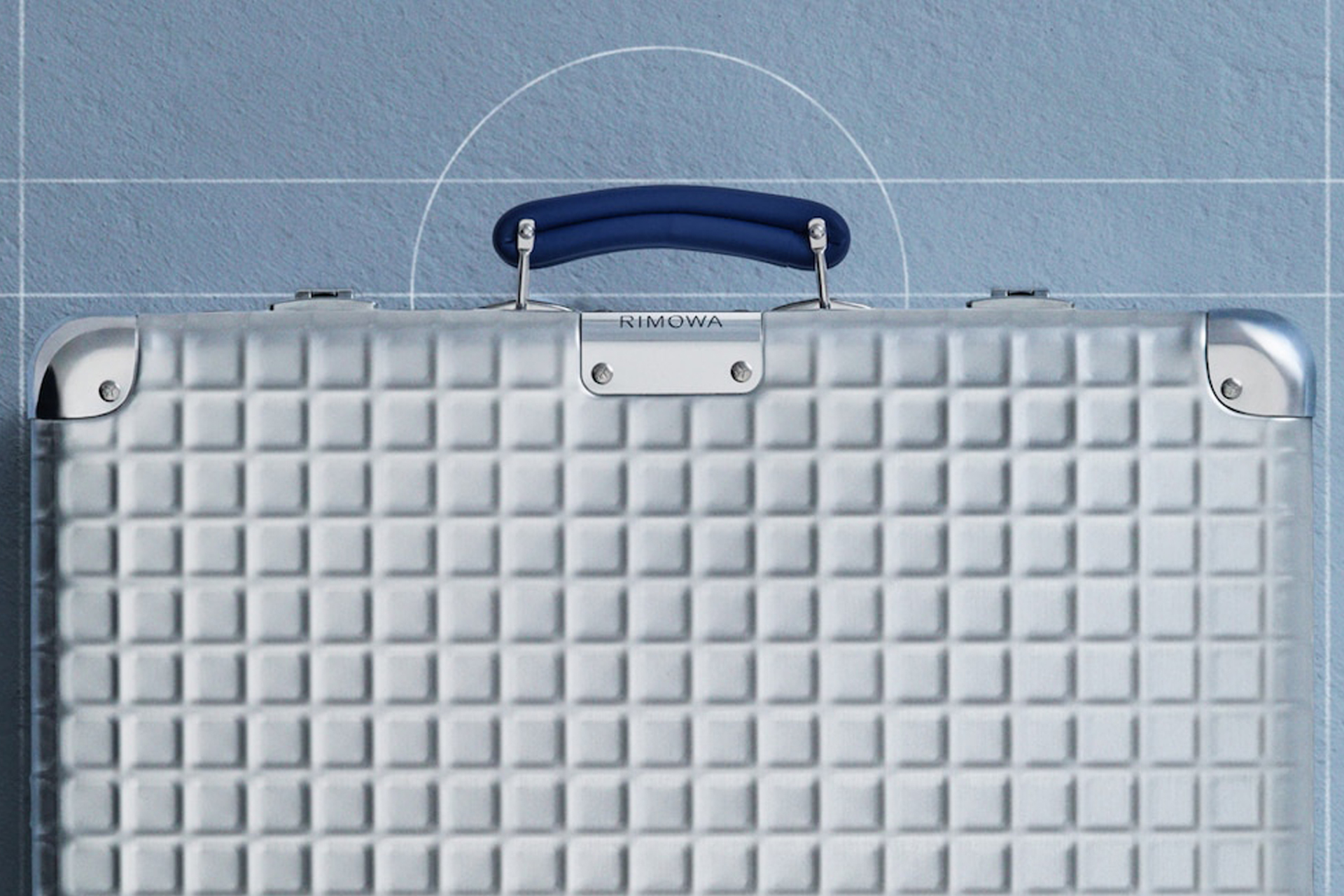 Rimowa has been working in aluminum since 1898, and the parallel grooves of its Classic line are one of the most recognizable silhouettes in travel. The 1969 Classic Aluminum Grid from Rimowa's archives is something different. That year, NASA landed on the moon and the Boeing 747 made its maiden flight. Precision engineering wasn't just fashionable, it was the defining spirit of the age. The grid-embossed aluminum shell captured exactly that energy. Now revived from the Cologne archives, the structured grid pattern is pressed into the rigid aluminum shell, with heritage blue leather handles and airplane-debossed rivets anchoring the archival aesthetic. The quilted interior lining replicates the grid pattern to carry the motif through to the inside. Palladium locks, the Multiwheel system, and a stage-free telescoping handle deliver the standard Rimowa hardware. Available in three sizes, each individually numbered. Covered by Rimowa's lifetime guarantee.