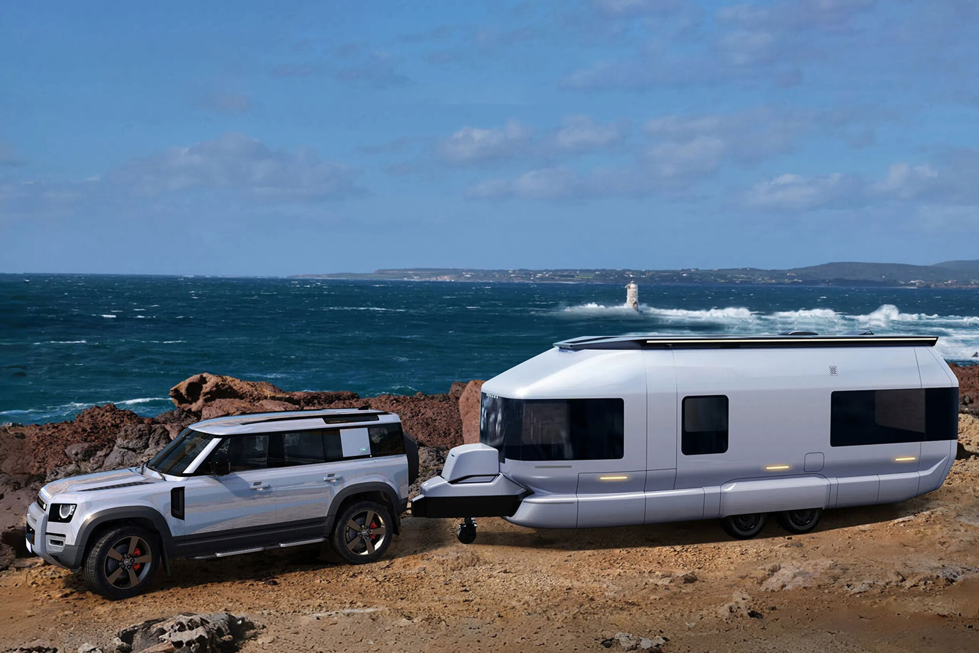 Built on a dedicated dual-motor skateboard chassis, the Skydream is a caravan designed to leave the grid behind entirely. Think the Atacama, where the sun never stops and the nearest outlet is hours away. With 45-85kWh of battery, a 1,100-2,200W solar system, and four independent air suspension corners, it runs off-grid for up to 14 days and can charge your EV when you get back home. The spacecraft-inspired shell stretches 26.6 feet and fits a full bedroom with a zero-gravity electric bed, a wet/dry separated bathroom, a fully equipped kitchen, and a living room that converts to a queen bed. Hit a button and a fold-out balcony adds 59 square feet of outdoor space. The ADAS system handles automatic hitching, self-parking, hill assist, and perimeter monitoring. One-touch Camp Mode does the rest.