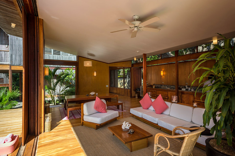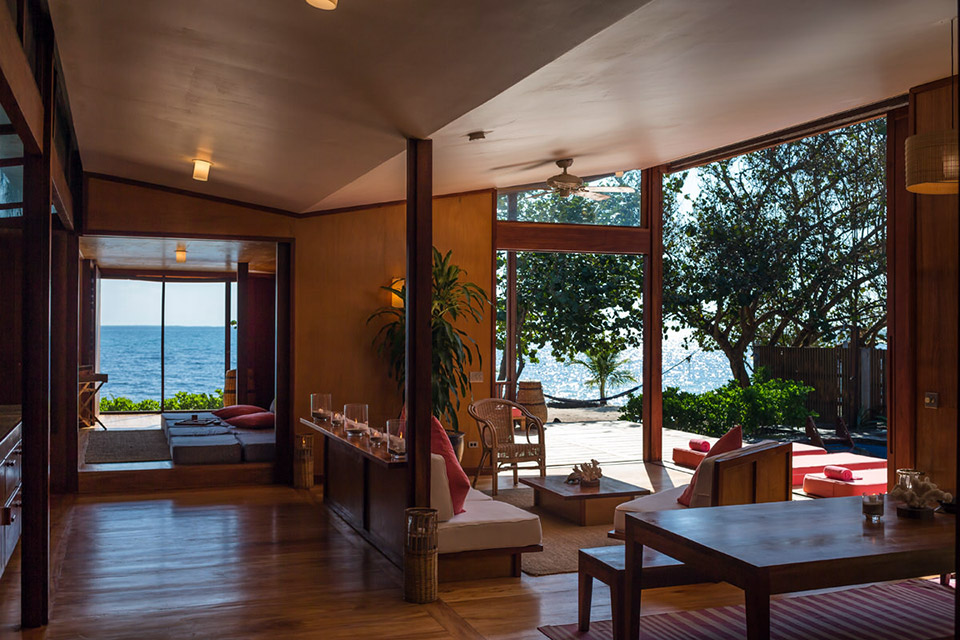 Overlooking the ocean in a small village in Belize, Sofia Coppola's Beach House adds a mid-century flare to the traditional tropical getaway. The Laurent Deroo-designed accommodations is a part of the Coppola family resort Turtle Inn and consists of a main house and two guest bungalows. The home steps away from the rest of the resort's Balinese style with more modern lines, while still maintaining the relaxed atmosphere of a Caribbean retreat. Features include an open-air living area, private pool, master suite, bunkroom, private butler, and oceanfront media room where you can watch your favorite Coppola family films.