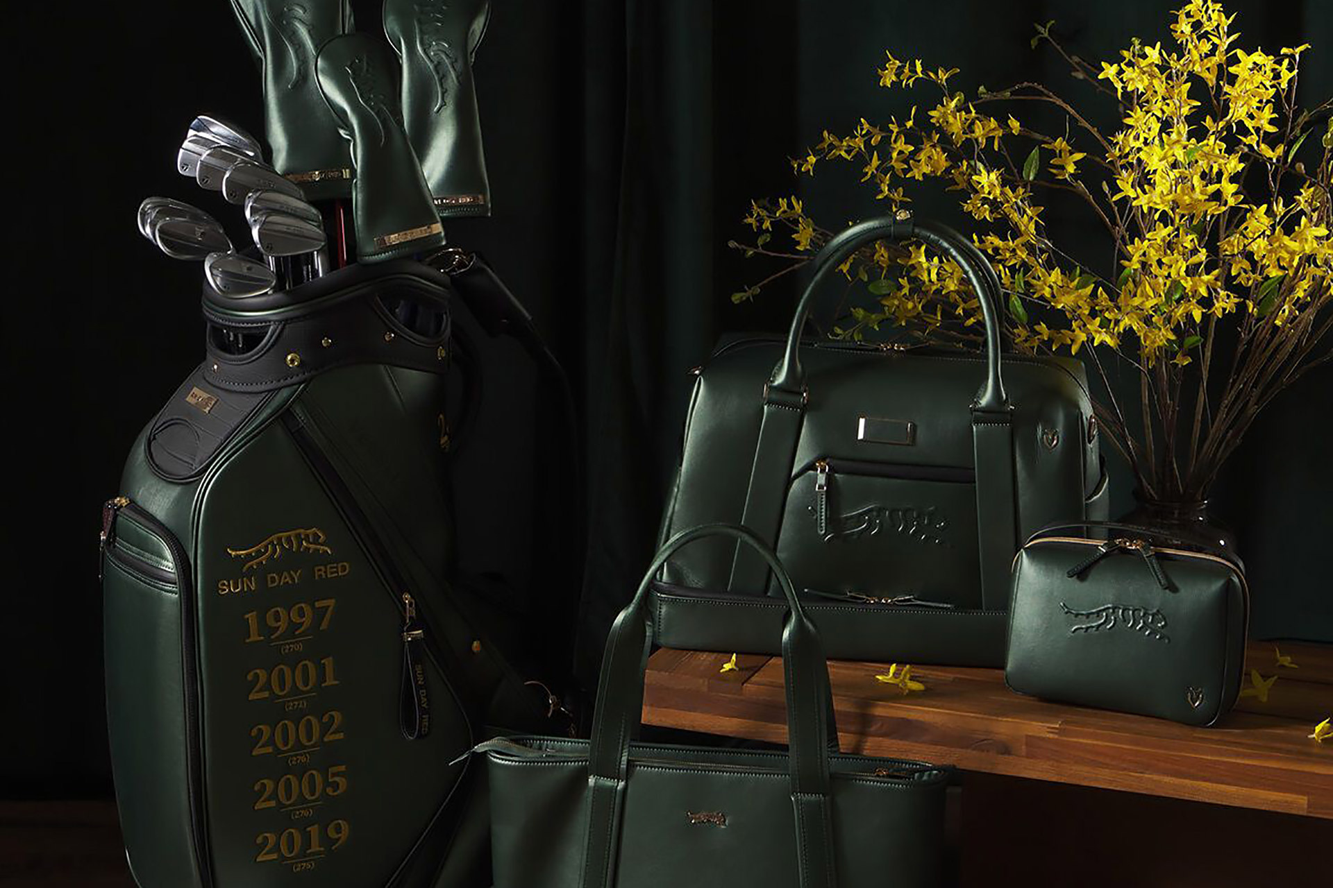 Sun Day Red's Spring Traditions Collection arrives in the only two colors that matter this week. The three-drop capsule is timed to golf's most celebrated week, working azalea pinks and deep fairway greens across 34 pieces of performance apparel, footwear, and accessories. The standout is the Legend Polo, a nod to a 1991 Junior Amateur Championship outfit rendered in the collection's signature palette. A cashmere crewneck, a new Anorak, and a full run of hoodies and hats round out the apparel, while two limited-edition shoes pick up the collection's floral accents and soft spring tones. A limited run of 1,000 dark green staff bags marks the 25th anniversary of one of golf's greatest seasons as we prepare for the one unfolding now.