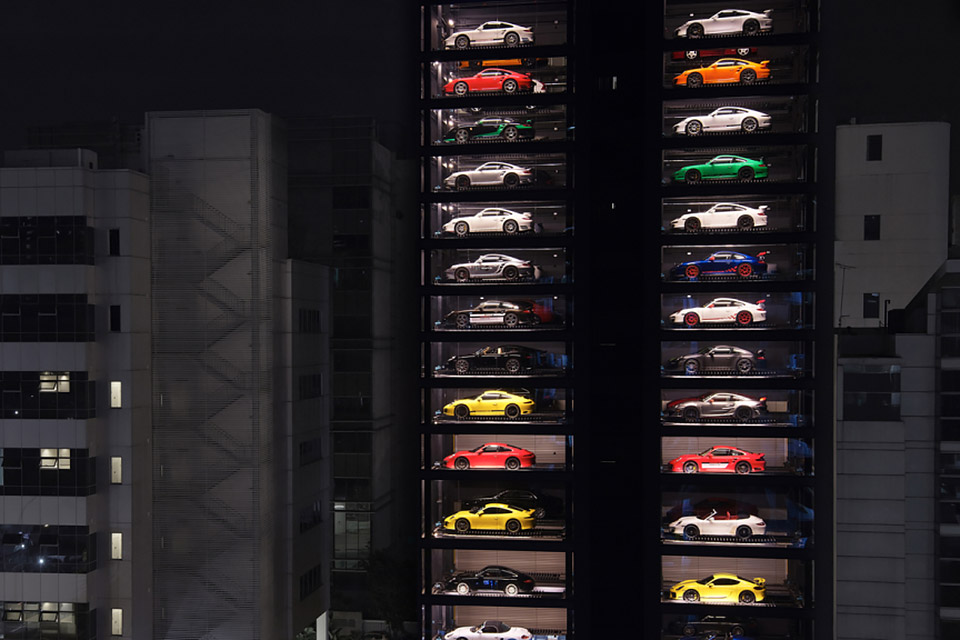 A far cry from the soda dispensing machines we're accustomed to, this Supercar Vending Machine in Singapore is ready to spit out a Porsche or Lambo at the press of a button. It's not self-serve, though — instead, once you've picked your car from the inventory, the dealer taps the screen on his iPad, and your car begins its journey down the 15-story tower. In the meantime, you're treated to a video introducing the car shown with pulse-pounding bass; the dealer hopes to start offering wine or whiskey while you wait as an added perk. Once your vehicle arrives on the ground, it rotates on a turntable illuminated by spotlights, waiting for you to get in and drive.