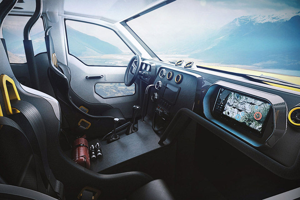Designed specifically for use in difficult terrain, the Surgo Mountain Rescue Vehicle has capabilities far beyond that of any production SUV. The concept was created by Warsaw-based studio 2sympleks with input from real-life GOPR and TOPR rescuers. Its innovative suspension, developed by the neighboring Automotive Industry Institute, lets it lock its body in a shifted position, enables approach and departure angles of nearly 90 degrees, and has an advanced system of springs and shock absorbers. Inside are seats for up to eight rescuers, plus enough room for two victims to be safely transported via stretchers. While a scale model has been built, no plans to build a full-size version have been announced.
