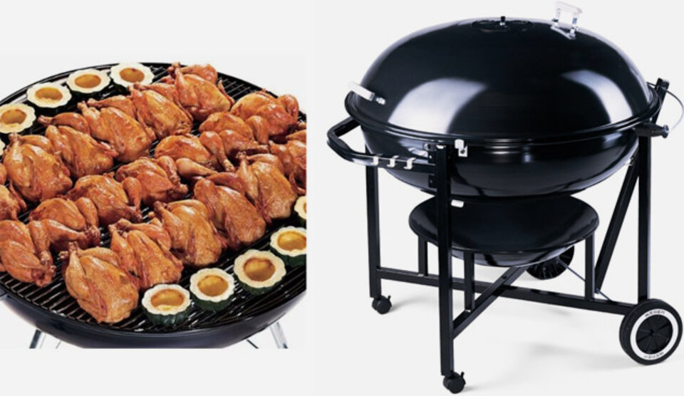 That's right. Ranch. As in big steers, big sky, and big spaces. Or big-ass grills, like the Weber Ranch Kettle ($1,100). Featuring a heavy-duty steel cart, all-weather wheels, locking casters, and a porcelain-enameled bowl and lid, this oversized kettle boasts a whopping 1,104 square inches of cooking area, enough to handle multiple turkeys, chickens, or more burgers than you and your entire fantasy league can eat, with room left over to cook up some tofu patties for your more sensitive pals.