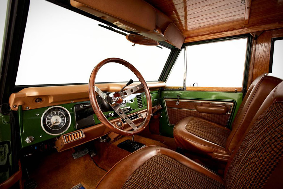 Mixing classic Bronco styling with a woody concept borrowed from SUVs like the Jeep Wagoneer, this Woody Ford Bronco is a unique one-off that will be the toast of any show. It's based on a 1974 model, outfitted with marine-grade wood on both the exterior and interior. It's powered by a fuel injected Ford 302 V8 crate engine, and has added modern necessities like A/C, power disc brakes, power steering, an automatic transmission, and a 3.5-inch lift kit. Okay, the last one isn't exactly a necessity, but it does help with its off-road cred while giving plenty of space to show off the white wheels and 31-inch tires.